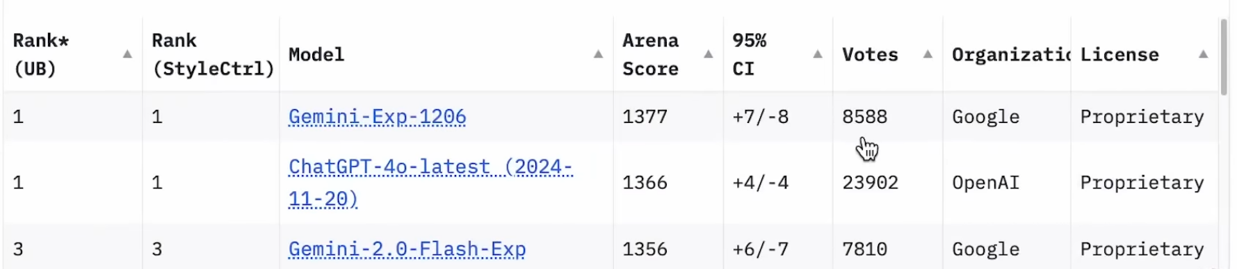 AI 챗봇 순위: 3위에 오른 Gemini 2.0 Flash