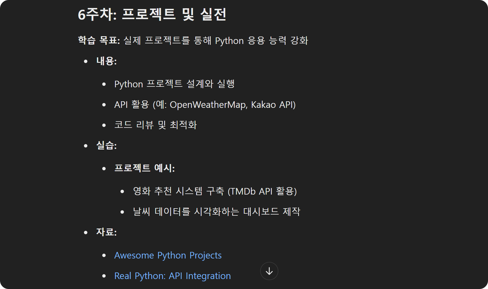 6주간의 교육 계획을 작성해 주세요. 관련 사이트나 자료 등이 있으면 링크도 제공해 주세요."