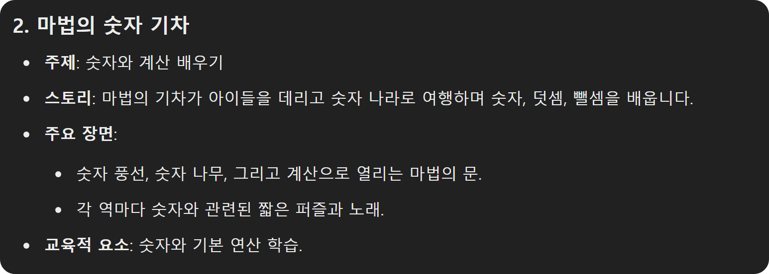 "어린이용 애니메이션 뮤직 비디오에 대한 아이디어를 주세요."