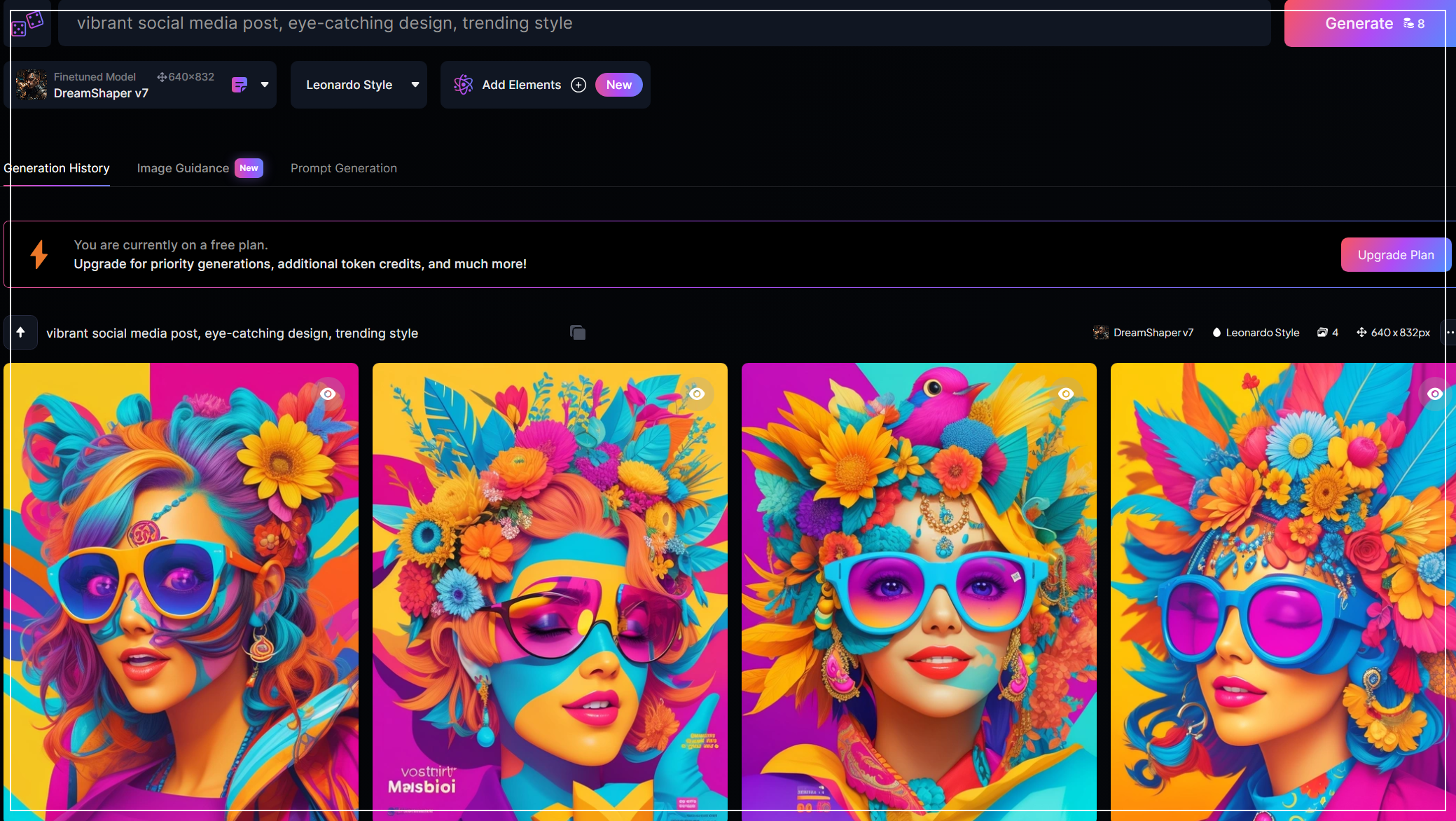 프롬프트 예시: vibrant social media post, eye-catching design, trending style