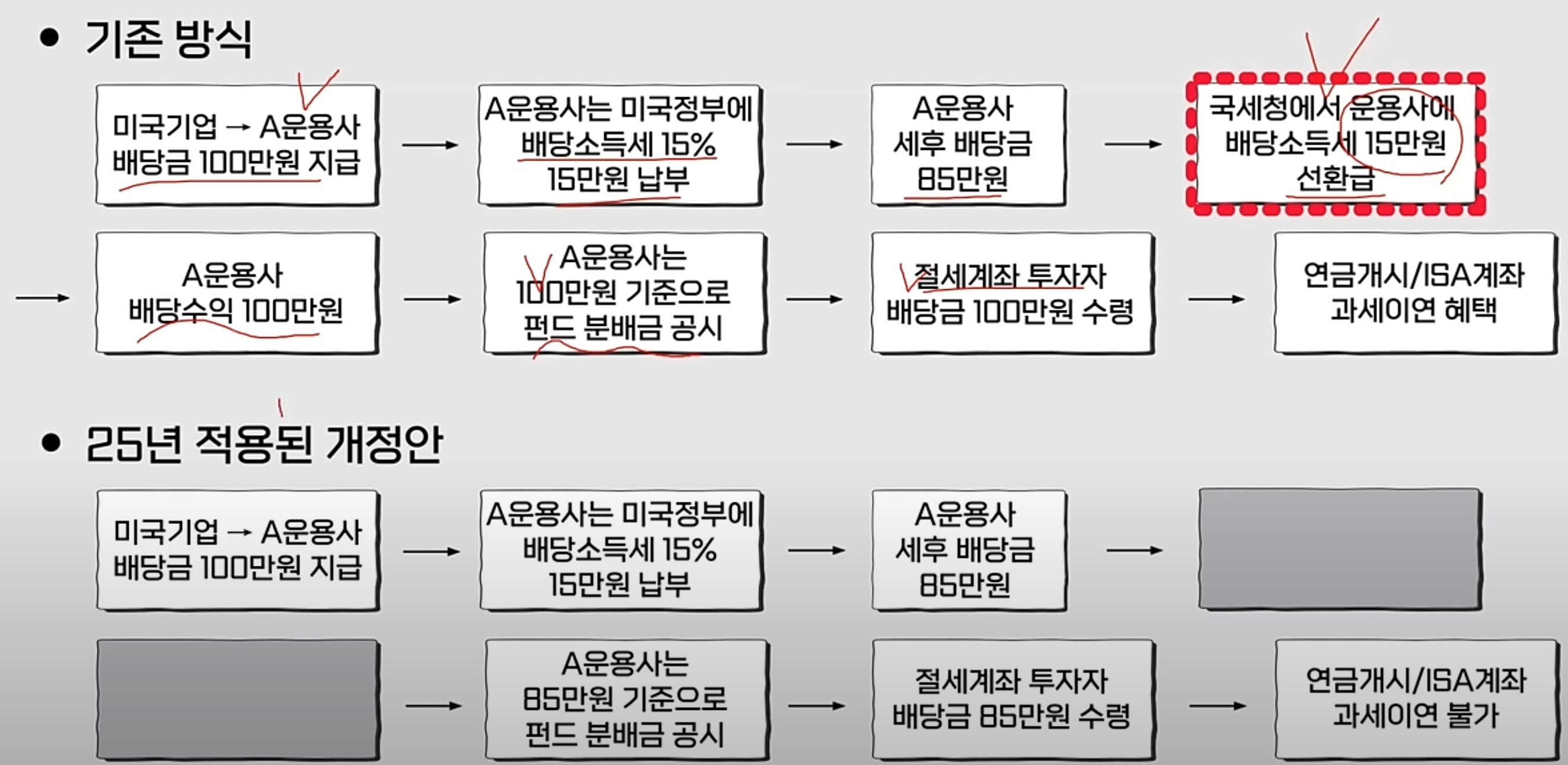 - A 운용사는 세후 배당금 85만 원을 받게 되지만, 국세청에서 이 운용사에 배당소득세 15만 원을 환급해 줬습니다.