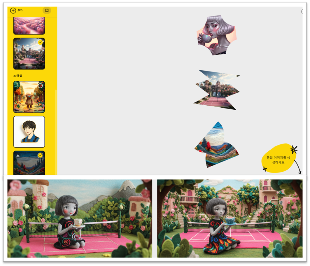| 스타일 | 표현 방식 (3D, 수채화, 페이퍼 아트) | 디즈니 픽사 스타일, 빈티지 사진 필름 |