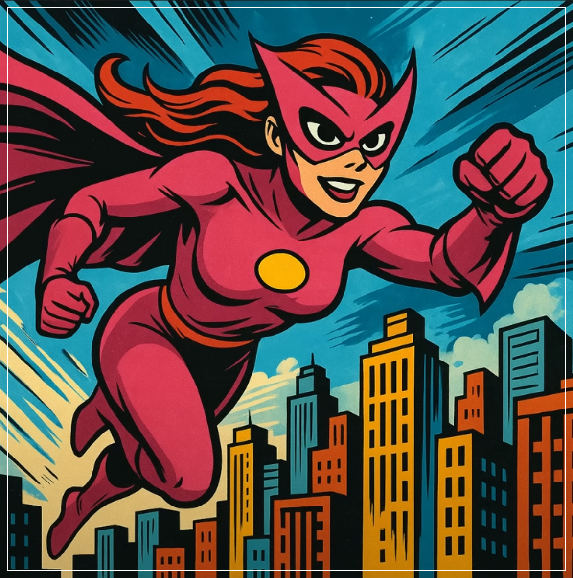 - 코믹북 스타일 (Comic Book Style): 역동적인 포즈, 밝은 색상, 액션 가득한 장면이 특징. 스토리텔링이나 포스터