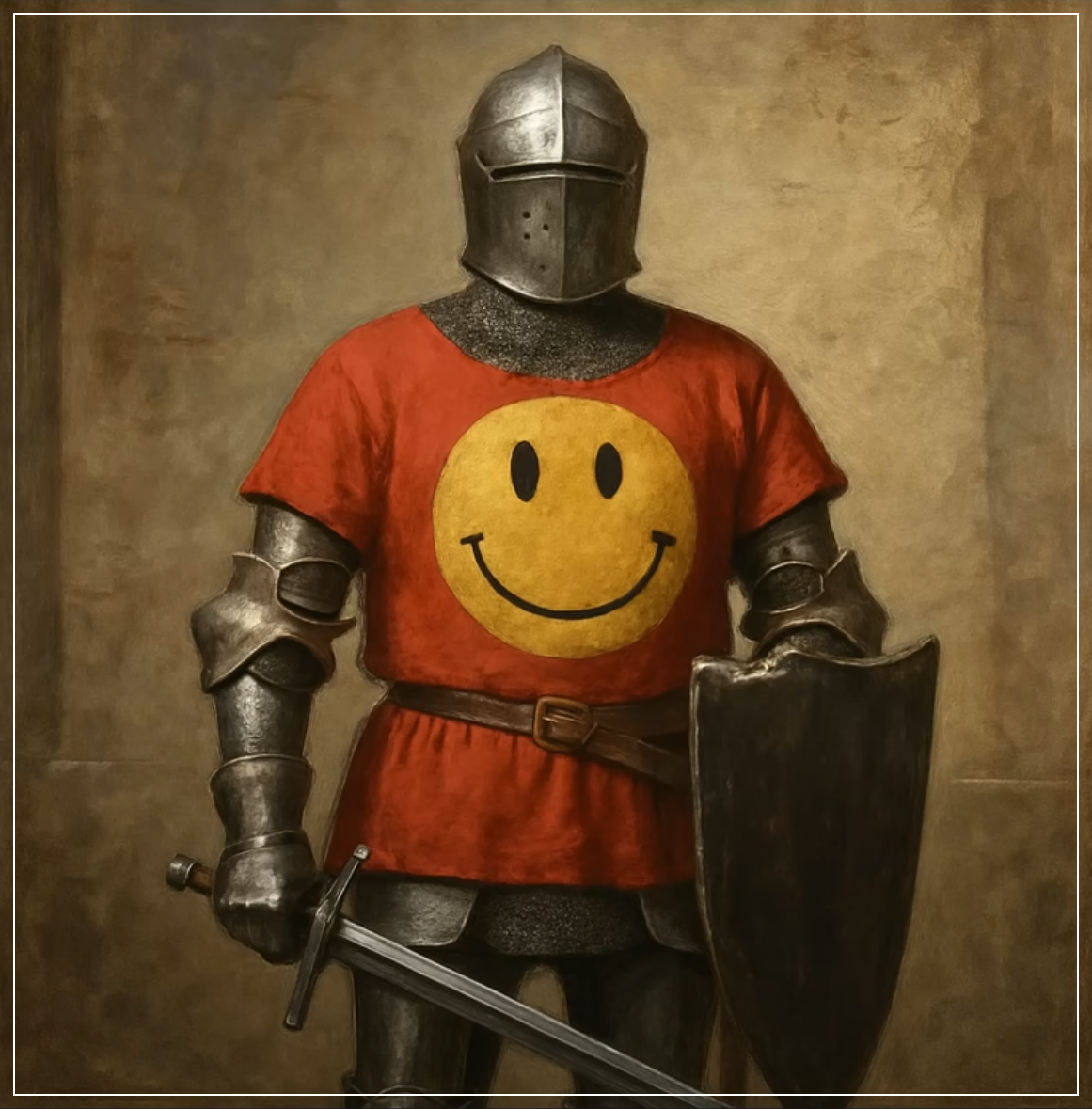 Prompt: Create an anachronistic art image of a medieval knight. Square Ratio.