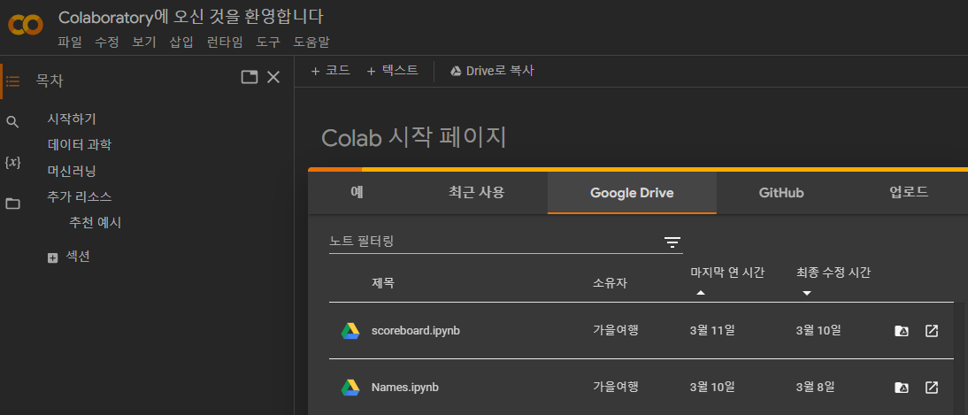 - 코랩은 무료이며 인터넷 연결만 있으면 어디서든 접속할 수 있는 장점이 있습니다. 위 링크를 따라 가입 진행을 합니다.