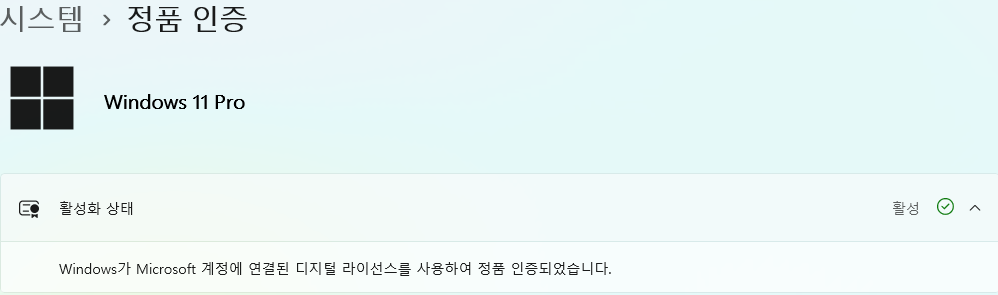 - 시스템 -> 설정 -> [정품인증] 메뉴에서 정품인증 내역을 확인할수 있습니다.