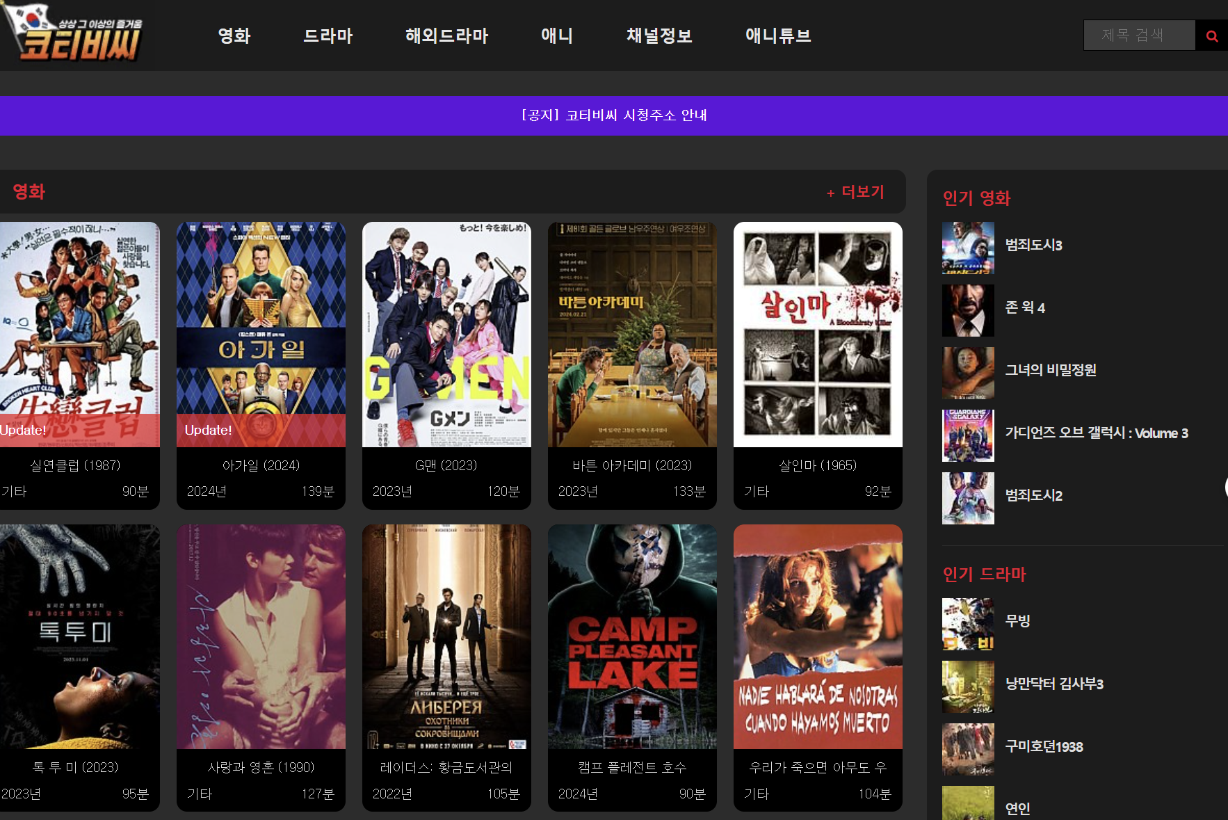 최신 영화, 드라마, 종영된 애니메이션 등을 무료로 즐길 수 있는 대표적인 온라인 스트리밍 사이트입니다. 이 사이트는 회원가입이 필요 없으며 사용자 친화적인 인터페이스를 갖추고 있고 쉽게 검색할 수 있습니다. 콘텐츠 업데이트 주기가 빠른편이기에 5위에 선정합니다.
