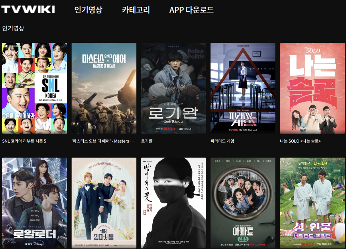 티비위키는 사용자들에게 다양한 TV 프로그램과 영화를 무료로 제공하는 인기 스트리밍 사이트입니다. 회원가입 없이 쉽게 접근할 수 있는 장점이 있으며, 사용자 친화적인 인터페이스와 광범위한 콘텐츠 라이브러리로 많은 사람들에게 사랑받고 있습니다. 잦은 버퍼링과 광고 등이 적고 화질이 FHD를 기본으로 제공하고 있어서 1위로 선정하였습니다.