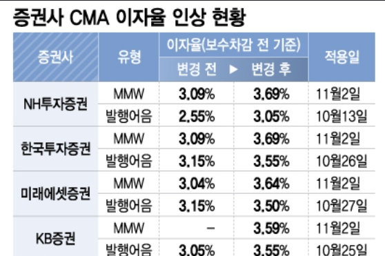 - CMA 통장: 비교적 높고 일관된 이자율을 제공합니다. 예를 들어, 3.45%의 이자율을 적용받을 수 있는데, 여기에 복잡한 조건이 붙지 않습니다.