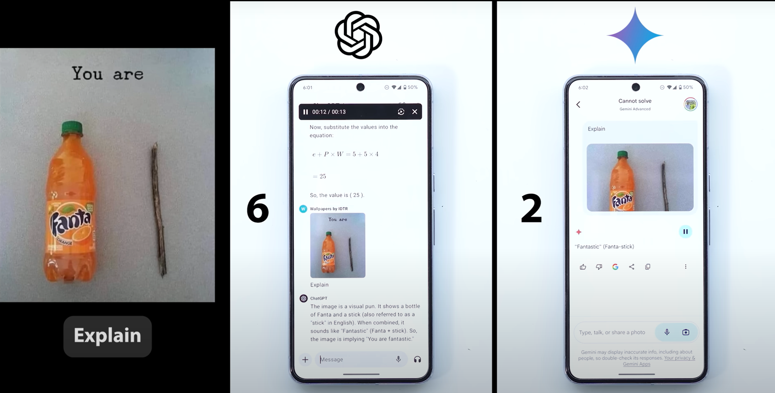 첫 번째 이미지는 시각적 말장난입니다. 환타 병과 막대기를 합쳐서 "판타스틱"이라는 단어를 만들어냈죠. 센스 넘치지 않나요? 😉
