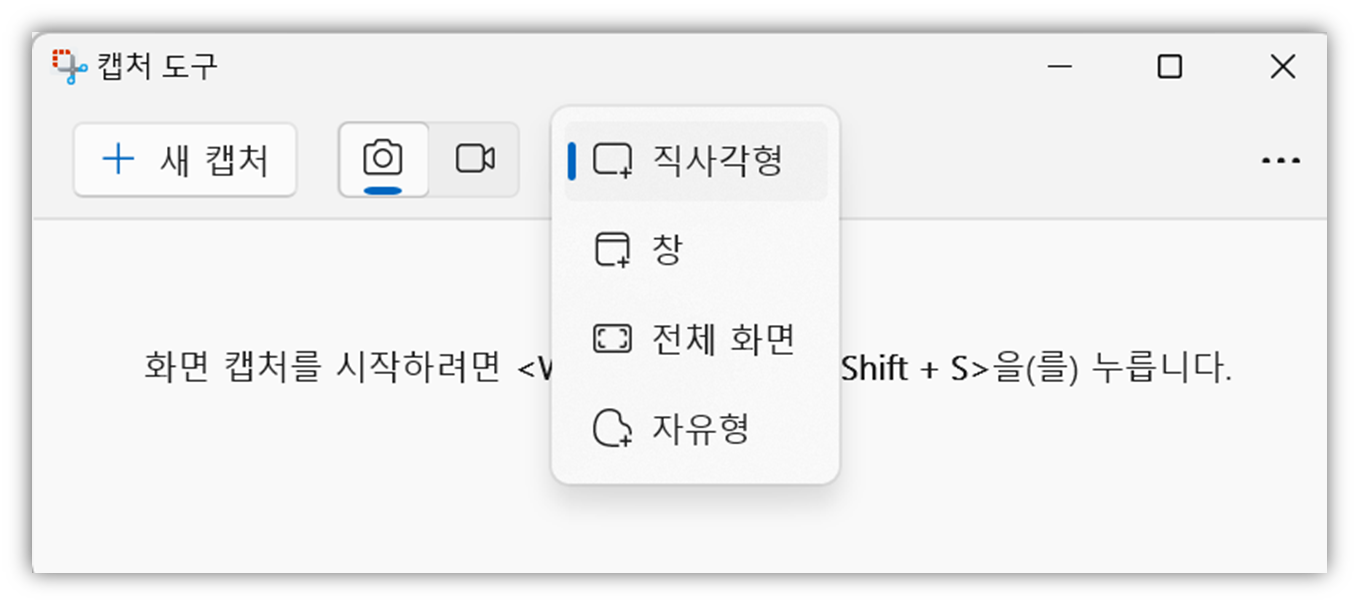 | Ctrl + C | 캡처 내용을 클립보드로 복사 |