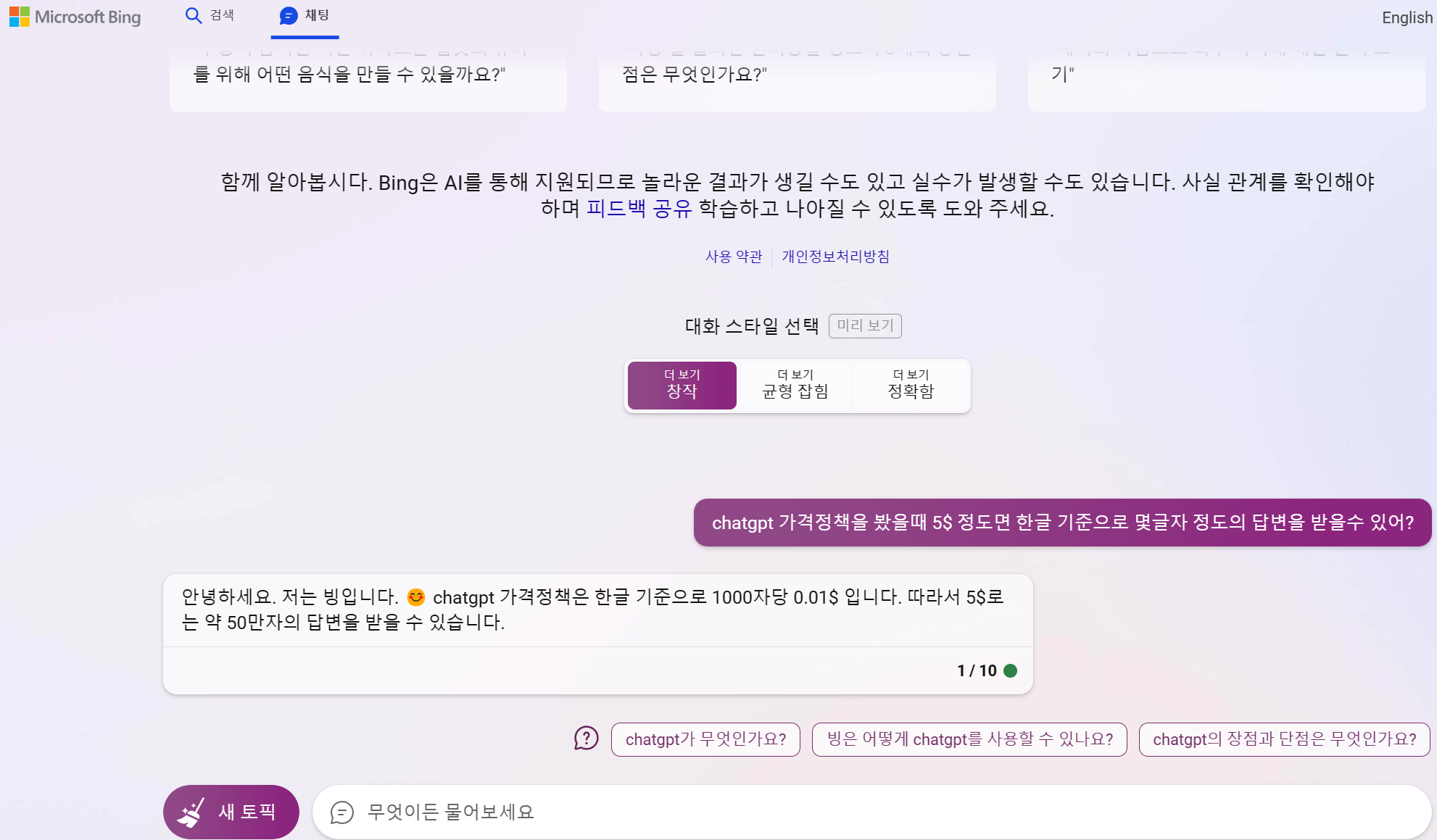 이번에는 마이크로소프트의 'New Bing' 에게 물어보았습니다.