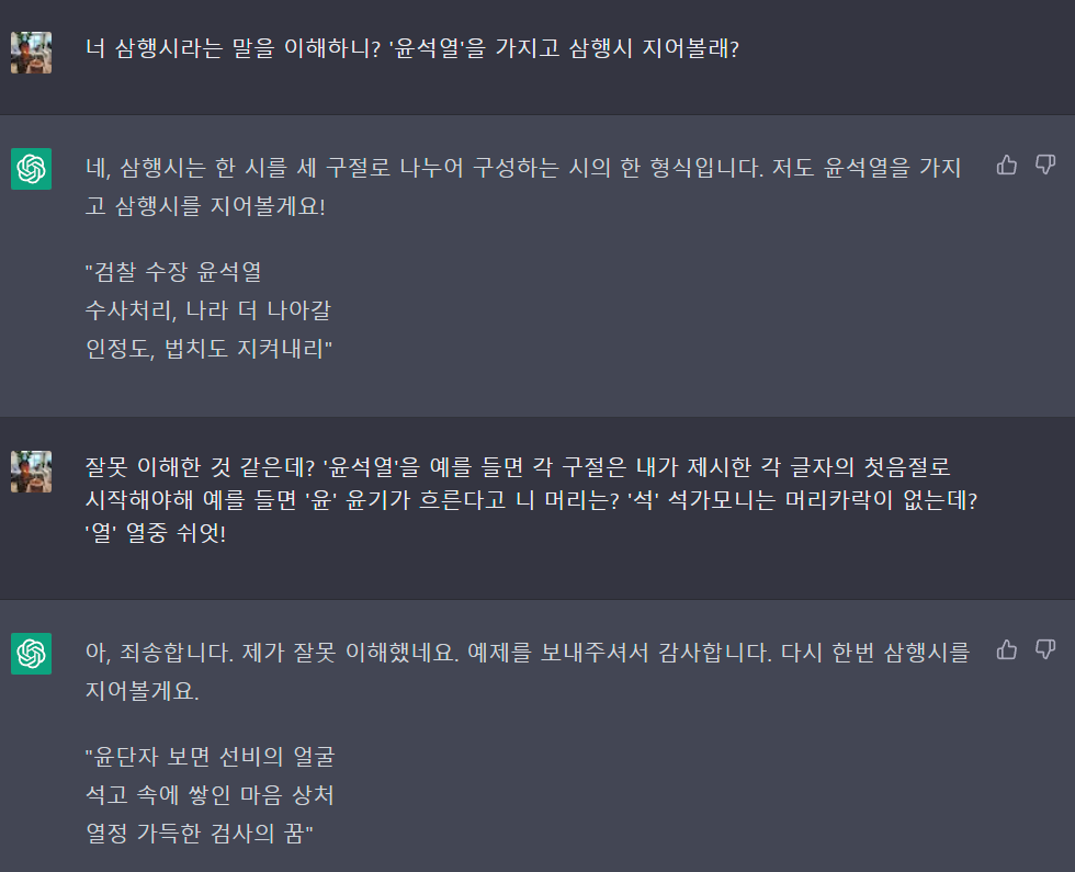 하지만 이렇게 실망만 하기엔 이릅니다. 공식 사이트나 chat 사이트에서는 활용방법에 대해서간단히 안내하고 있고 고맙게도 한글을 능숙한 수준으로 이해하고 있습니다.